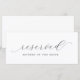 Um símbolo de cadeira reservada para casamento minimalista com letra de caligrafia romântica. Orifícios de perfuração e adição de fita ou fio.