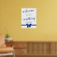 Impressão de recepção de casamento azul e branco com arco preto e texto personalizável - você pode adicionar noivas e nomes de noivos e data de casamento. As dimensões do impressão de sinal (poster) são de 18 por 24 polegadas.