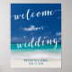 A impressão da recepção de casamento da praia de caligrafia com texto personalizável - você pode adicionar o nome da noiva e do noivo e a data do casamento. As dimensões do impressão de sinal (poster) são de 11 por 14 polegadas.