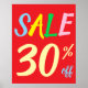 Sinal de venda de 30% numa paleta colorida. Você pode alterar a taxa de desconto usando a função "Personalizar Ti".