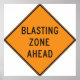 Um sinal avisando que há uma zona explosiva à frente. Esta design parece realmente eficaz nestes Poster