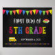 Sinal do Primeiro Dia da Escola | 5 de Grau Poster—Chute o ano escolar do seu filho com um sinal festivo e colorido de primeiro dia de aula! Que maneira divertida e memorável de se lembrar do primeiro dia de escola do seu filho. Personalize a data do seu primeiro dia de escola e prepare-se para todas essas fotos!