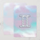 Uma mãe de pérola como o símbolo Gemini zodiac em fundo de fúcsia roxa e rosa suave. Um design moderno estilo feminino urbano para uma ideia personalizada de presente de aniversário para ela. E Use o link "Perguntar a este Designer" para entrar em contato conosco com suas solicitações especiais de design ou para obter assistência com suas necessidades de personalização.