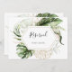 Este símbolo de casamento tropical de ouro geométrico é perfeito para um casamento moderno. O design apresenta ouro de aquarela pintada à mão e palmeiras verdes e folhas de bananeiras com flores cor-de-rosa amontoadas em buquês, enfeitando um quadro geométrico. Estes cartões são duplos e podem ser usados para reservar cadeiras ou mesas na cerimônia de casamento, recepção ou qualquer evento.