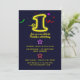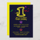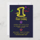 Convites de primeiro aniversario de cor brilhante com neon "1", estrelas e confete.
