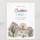 Prepare-se para se divertir em um chá de bebê cowboy que captura o espírito do Velho Oeste! Este charmoso design apresenta uma fonte de corda divertida que se entrelaça por meio de cenas ilustradas à mão de rodeios e cowboys, completo com cavalos galopando e paisagens desérticas. Perfeito para o chá de bebê de qualquer menino, esta coleção inclui convites caprichosos, decoração encantadora e brindes divertidos, todos infundidos com um toque de charme ocidental. A partir do momento em que os convidados chegarem, eles sentirão como se tivessem entrado em uma animada aventura no rancho, celebrando a chegada do seu pequeno caubói com estilo! Veja a coleção completa para mais itens correspondentes!