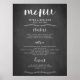Este cardápio mostra o cardápio do seu casamento para os seus hóspedes num fundo de quadro negro para corresponder ao seu tema rústico.