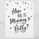 Qual é o tamanho da Mamãe Belly? - sinal de jogo. Também na nossa loja há cartas para este jogo. Atividades de Chá de fraldas preto e branco monocromático!