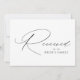 Símbolo moderno reservado com "Reservado" exibido em um script elegante de caligrafia preta com fundo branco ou cor personalizada. Personalize o sinal reservado do script com seu texto personalizado (mostrado atualmente com "Família de Noivas"). O design repete na parte de trás do sinal. Use o sinal de casamento preto e branco para reservar cadeiras ou mesas na cerimônia de casamento, recepção, janto de ensaio ou outros eventos especiais.