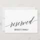 Este elegante símbolo de caligrafia branca e negra "reservado" é perfeito para um casamento simples. A placa tem dois lados (impressões em ambos os lados). A design neutra apresenta uma carta minimalista decorada com tipografia romântica e caprichosa. Use estes cartões para reservar cadeiras ou mesas na cerimônia de casamento, recepção ou qualquer evento.