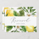 Este moderno símbolo reservado de limão é perfeito para um casamento de primavera ou verão. O design mediterrânico rústico apresenta limões aquosos brilhantes e bonitos com flores brancas boêmicas e folhas verdes elegantes. Use estes cartões para reservar cadeiras ou mesas na cerimônia de casamento, recepção ou qualquer evento.