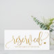 Sinal Reservado de Casamento da Caligrafia Russa (Faux Gold Foil): Mantenha esta placa reservada para caligrafia rustica com uma fita bonito nas cadeiras ou apoie as mesas na sua recepção. O design é colocado numa folha de ouro falso, mas se pretender uma cor plana, basta clicar em "Personalizar Mais" e desligar a imagem da folha de alumínio clicando no ícone do olho ao lado.