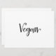 Um simples e bonito sinal de caligrafia "Vegan". Este sinal com letra manual pode ser usado para adicionar um estilo moderno no recepção de casamento. NOTA ________________________________________________________________________________________________ Este é um sinal de 6,5" x 8,75", clicando no botão "personalizá-lo" que você pode acessar às ferramentas de design para alterar o tamanho e a forma, e também pode adicionar uma cor de fundo. Para combinar este sinal com o seu estilo de casamento, pode escolher entre 12 opções de papel únicas. Para uma sensação rústica, use a kraft artística, para adicionar um pouco de vidro, use o shimmer de pérolas. __________________________________________________________________________________________________