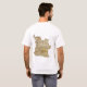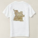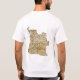Um título e slogan editáveis acompanha o motivo amarelo sobre bandas vermelhas e pretas da bandeira angolana na frente desta camiseta. O verso exibe um mapa detalhado de Angola.