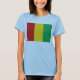 A frente desta t-shirt exibe corajosamente a bandeira guineense com as suas bandas verticais distintivas, vermelhas, amarelas e verdes. Isso é combinado atrás por um mapa atraente de Guiné-Conacri.