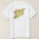 A frente desta camiseta tem uma pequena bandeira síria com seu familiar, enquanto a parte de trás exibe um mapa de alivio da Síria. Disponível em t-shirts, camisas de suor, polos, capas compridas e muito mais.