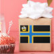 Vinheta com design com uma bandeira do condado histórico da Caitidade, na Escócia, Excelente-Bretanha; bandeira negra com cruz azul e amarela nórdica e uma ilustração de um navio com um riacho na vela superior