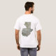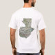Um título e slogan editáveis acompanha as bandas verticais azuis e brancas da bandeira guatemalteca na frente desta camiseta. O verso exibe um mapa detalhado da Guatemala.