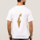 Um título e slogan editáveis acompanha o hexagrama azul em uma banda branca com bandas azuis e brancas acima e abaixo da bandeira israelense na frente desta camiseta. O verso exibe um mapa detalhado de Israel.