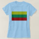 A frente desta camiseta exibe corajosamente a bandeira lituana com as suas bandas distintivas horizontais amarelas, verdes e vermelhas. Isto é combinado atrás por um mapa atraente da Lituânia.