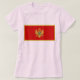 A frente desta camiseta exibe corajosamente a bandeira montenegrina com seu casaco de braços distintos sobre um fundo vermelho com borda dourada. Isto é combinado atrás por um mapa atraente do Montenegro.