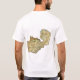 Um título e slogan editáveis acompanha a águia laranja acima das bandas verticais vermelhas, pretas e laranja sobre a mosca num fundo verde da bandeira zambiana na frente desta camiseta. O verso exibe um mapa detalhado da Zâmbia.