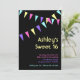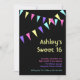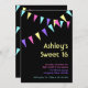 Várias faixas de bandeiras coloridas e estilo de clube de dança, façam este pop de convite, para um Sweet 16. Este convite pode ser facilmente personalizado para um aniversário de 18 anos, aniversário de 21 anos ou qualquer outra idade.