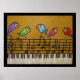 pássaros e notas e poster de teclado