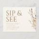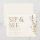 Este belo convite de outono mostra a frase "Sip and See" em letras grandes, elegantes, em todo o topo, definindo um tom acolhedor e festivo. Abaixo, você encontrará espaço para todos os detalhes essenciais da parte, como data, hora e local, garantindo que os convidados tenham todas as informações necessárias. Do lado direito, as folhas de aquarelas moles caem e as flores adicionam um toque de encanto e calor autóctones. Este convite pensadamente desenhado captura o espírito de união e gratidão, fazer-o a escolha perfeita para convidar os entes queridos a conhecerem o vosso novo bebê.