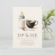 Este gole e veja o modelo convite de festas apresenta um design atraente e aconchegante. No topo, uma garrafa fofa de leite com um boné azul senta-se ao lado de uma xícara de café a vapor, simbolizando o calor e o conforto de se reunir com entes queridos para conhecer o novo bebê. A paleta de cores suaves e as imagens lúcidas criam uma atmosfera acolhedora, perfeita para celebrar esta ocasião especial. Abaixo da ilustração deliciosa, é fornecido amplo espaço para os convidados encontrarem todos os detalhes essenciais, incluindo a data, hora e local do evento. Este convite dá o tom para um relaxado e alegre encontro.