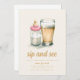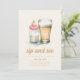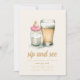Este modelo Sip and See apresenta um design lúdico e charmoso com uma garrafa de leite que esportiva um boné rosa, colocado próximo a um copo congelado de cerveja. O contraste entre as duas bebidas simboliza o encontro entre família e amigos para celebrar a pequena e desfrutar de algumas bebidas adultas. Abaixo da ilustração, há muito espaço para incluir os detalhes da parte, como data, hora, local e quaisquer notas especiais. A design combina a alegria de acolher um novo bebê com uma atmosfera relaxada e divertida, perfeita para uma celebração memorável.