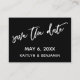 Mantenha seus convidados de casamento em contato com todos os seus detalhes com esses cartões de casamento modernos de dois para um. As sobreposições de texto de tipografia casual foram projetadas usando uma fonte moderna manuscrita, em branco. No cabeçalho de um lado lê-se "site de casamento" e o outro, "salve a data". Use os campos modelo para personalizar essas placas de gabinete com suas informações pessoais. O fundo é preto editável; mude para qualquer cor que quiser! // 100 // Criada por Melody Watson para Muserie de Papel.