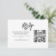 Simplifique o gerenciamento da sua lista de convidados com este cartão de resposta tecnológico projetado para o casal moderno eficiente. O layout apresenta uma tipografia de pincel preto em negrito combinada com um código scaneável limpo para respostas digitais sem complicações. Fácil de personalizar com a URL do seu site e detalhes do prazo.
