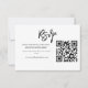 Simplifique o gerenciamento da lista de convidados com este cartão de resposta tecnológico projetado para o casal moderno eficiente. O layout apresenta uma tipografia de pincel preto em negrito combinada com um código escaneável limpo para respostas digitais perfeitas. Fácil de personalizar com o URL do seu site e detalhes do prazo.
