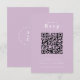 Cartão de recinto de fotos simples no site de na moda de casamento, em estilo moderno de design minimalista, com uma tipografia moderna em lílico e branco, escrita em estilo informal e informal. O texto pode ser facilmente personalizado com seus nomes, site de casamento, como amarrar o nó, código de QR digitalizável e mensagem para um único design de casamento gentil para manter seus amigos e família atualizados sobre seu próximo dia especial. Se precisar de ajuda para personalizar este produto, entre em contato comigo usando o botão de mensagem e eu terei todo o prazer em ajudar.