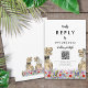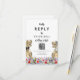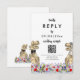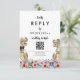 Traga diversão e alegria para os preparativos do seu dia de casamento com este cartão de resposta de site de código QR de RSVP de casamento temático de dinossauros com noivo e noiva T-Rex em um colorido prado de flores silvestres pré-históricas. Tipografia caprichosa moderna com modelos fáceis de personalizar para que você possa adicionar o código QR do site do casamento e endereço web do navegador e instruções úteis para os convidados. Noivo e noiva Tyrannosaurus Rex únicos com arte floral de verão em aquarela, obra de arte original da artista Catherine Sweetman. Ideal para o dia da recepção de casamento ou jantar de ensaio. O conjunto de casamento correspondente inclui tudo o que você precisará em sua divertida jornada de casamento.