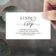 Apresentando nossa placa RSVP de Casamento de Elegância Moderna - a combinação perfeita de sofisticação e simplicidade em preto e branco. Projetada para o casal contemporâneo, esta placa RSVP apresenta um site de casamento limpo, casal, roteiro minimalista e um sutil toque de luxo para confirmar a presença de seus convidados. O elegante design complementa o tema moderno, adicionando um toque de classe à sua suíte de artigos de papelaria. Assegure-se de que seu dia especial seja meticulosamente planejado com nosso elegante cartão RSVP moderno - um eterno de manutenção para você e seus convidados.