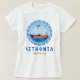 Sithonia, Grécia Camiseta feminina com um design de um navio grego antigo e letras em estilo grego. Este design apresenta um navio da Grécia Antiga e o padrão de linhas gregas em um design circular com o mar e o céu. Este design de verão torna esta camiseta ideal como um presente ou lembrança ou para usar enquanto você está em uma viagem para Sithonia.