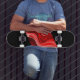 skate mostrado em um impressão abstrato gráfico de cores múltiplas vermelho. Cores Preto e Vermelho MultiComprar como está ou personalize este item de acordo com o seu gosto. Imagem do stock