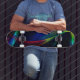 skate mostrado em um impressão gráfico de fumaça com abstrato de várias cores. Comprar como está ou personalize este item de acordo com o seu gosto. Imagem do stock