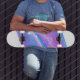 O skate é mostrado em um impressão de abstrato multicores artístico. Comprar como está ou personalize este item de acordo com o seu gosto. Impressão de ações freepik.com