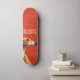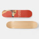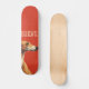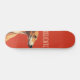 Este é um design de skate minimalista que apresenta uma ilustração marrom de galgos contra fundo vermelho vívido e um texto personalizável "delicado".