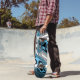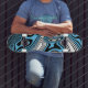 Este skate é mostrado em um impressão de espiral abstrato de cor azul. Cores Preto, Azul, Branco Personalize este item ou comprar como está. Imagem do stock freepik.com