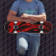 As cores do vermelho e preto criam um olhar arrojado e aterrorizado neste skate. Um legal efeito de borbulhamento criado de uma técnica de camadas de pincel digital. As ondas onduladas são exibidas dentro das ondas. Esta praia inspirou a design moderna e divertida.
