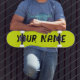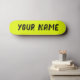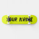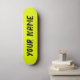 Deck de skateboard com um vibrante design amarelo neon fluorescente e espaço para nome personalizável. Perfeito para skate de rua, truques ou como um presente ousado e personalizado para entusiastas de skate.