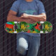 Arara com Flores Multicoloridas e Folhas de Palmeira em Preto. Ideal para amantes da natureza.