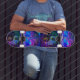 Árvore da vida trabalho de arte por Amelia Carrie apresentando uma árvore da vida crescendo através do centro de um yin yang para harmonia e equilíbrio (enquanto você monta seu skate),