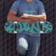 Seletiva, edição de fotos, criou esta arte gráfica em negrito, que exibe, linhas girando, que entrelaçam, em cores de verde-lacrimogêneo, azul-da-meia-noite, preto e branco, que se assemelha às autoestradas Interestaduais.