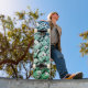 Este abstrato de trabalho de arte de aquarela digital apresenta uma paleta de verde para grama e azul para o céu.