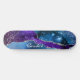 Quero mostrar um lado feminino para seu olhar de patinagem, então esse conselho de vidro é para você. Feito em um gráfico azul, roxo e prateado com aspecto brilhante, em um visual moderno de galáxia em camadas agata. Personalize o texto branco com seu nome para terminar este elegante visual de skater.